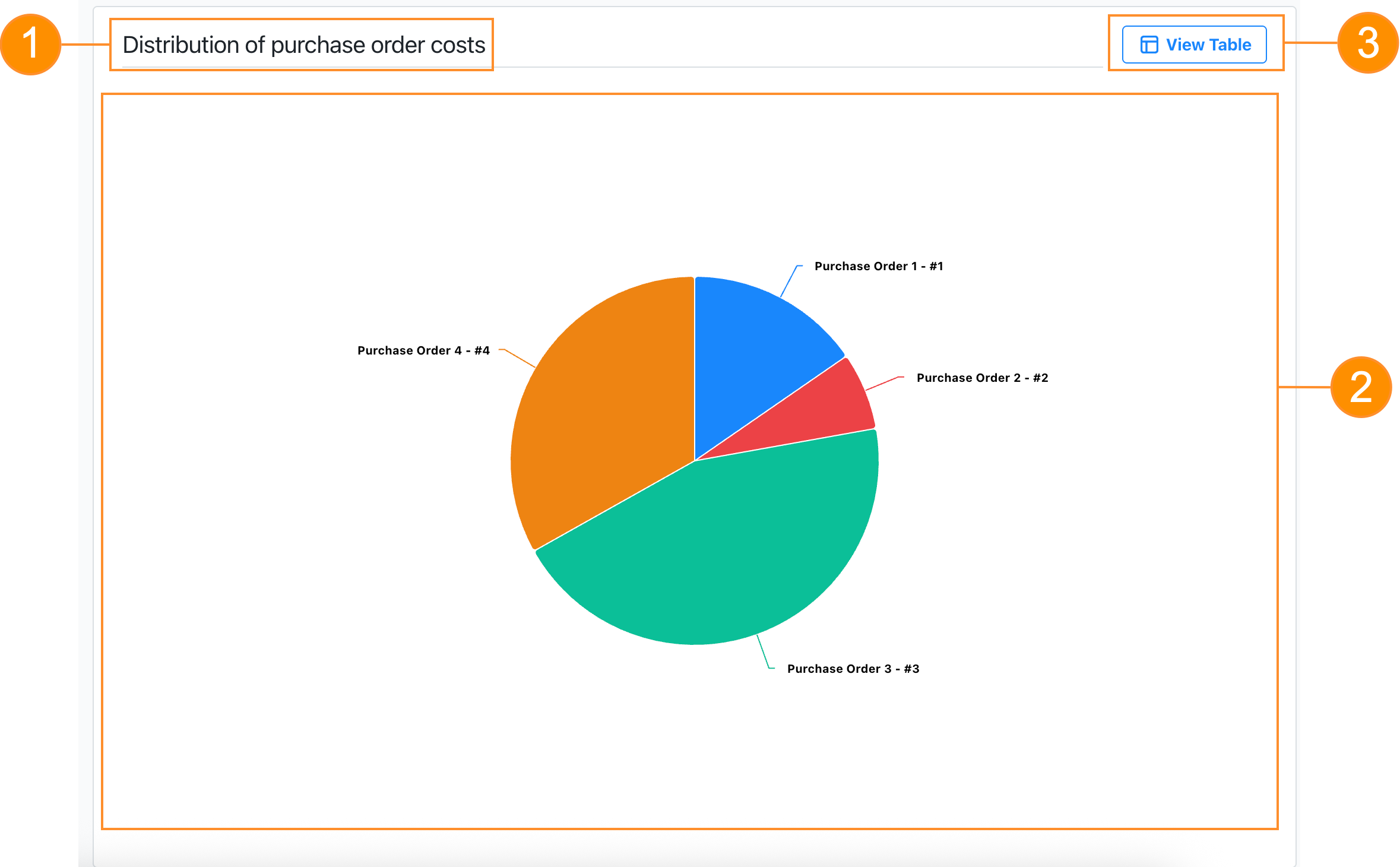 Let's say you want to build a pie chart to view the distribution of purchase order costs in your MaintainX organization during the last month.